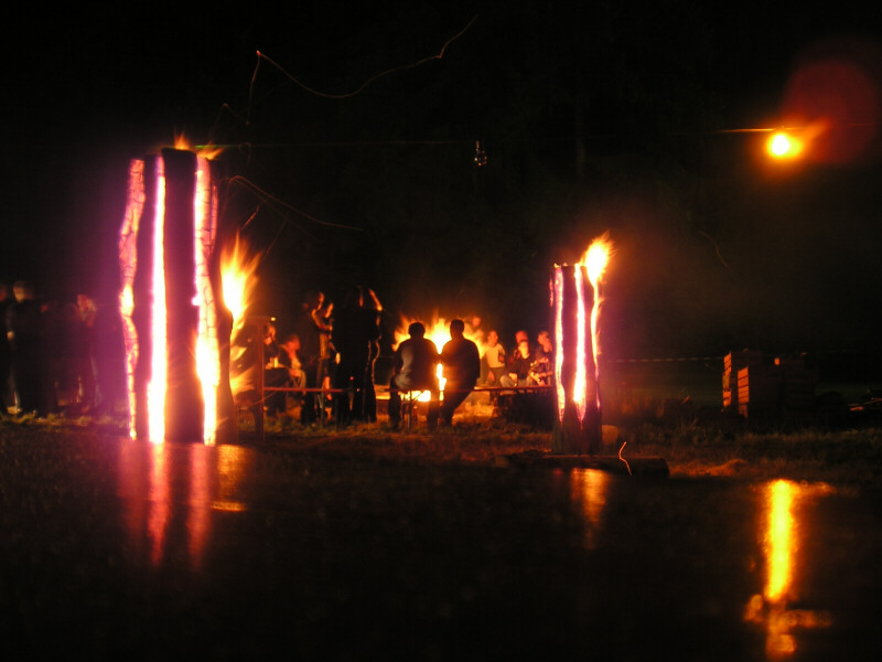 Ein Schwedenfeuer besteht aus einem stabilen Holzstück, das so geschnitten ist, dass es wie eine Fackel aussieht. Der Stamm wird in der Mitte eingeschnitten und anschließend aufrecht aufgestellt. Dank dieser speziellen Schnitttechnik brennt das Holz gleichmäßig und erzeugt eine beeindruckende Flamme, die sowohl Wärme als auch Licht spendet.